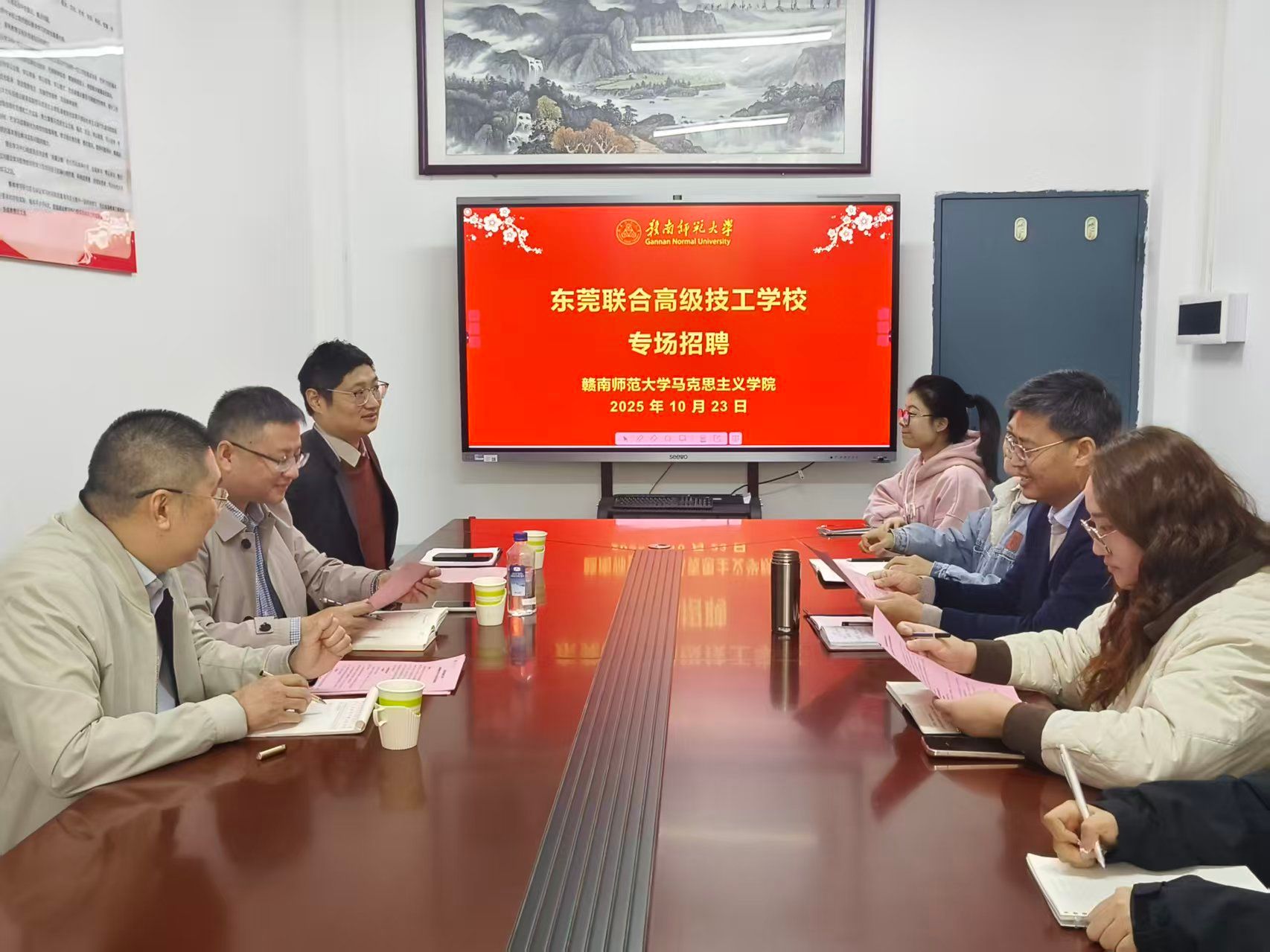 招聘会上,曾建国对陈广恩一行的到来表示欢迎,并从学科建设、人才培养、育人成效等方面介绍了学院发展概况。陈广恩详细介绍了东莞联合高级技工学校基本概况、招聘岗位及发展前景,重点解读了职业晋升通道与人才保障政策。活动现场,毕业生积极投递简历,与用人单位进行深入交流,招聘氛围良好。