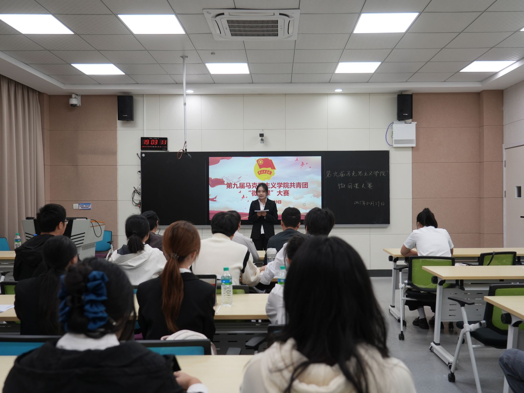 在博学楼322室举办第九届共青团“微团课”大赛,学院学工办教师和学生代表参加。