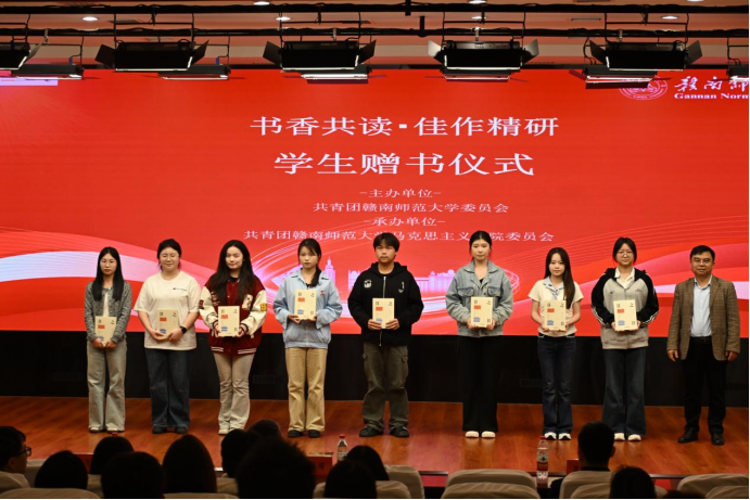 期间,江西省写作学会副会长明飞龙开展《书评写作的方法与实践》专题讲座,为在场学生分享写作技巧,帮助同学们摆脱被动阅读模式,梳理书籍脉络、提炼精髓,有效打破同学们“读而不思、读而不记”的阅读困境。现场还为优秀学生代表赠书。