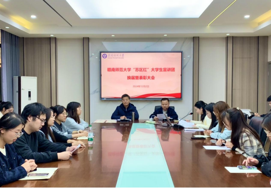 12月2日,学校“苏区红”大学生宣讲团在第三教学楼201室举行换届暨表彰大会。Njavtv