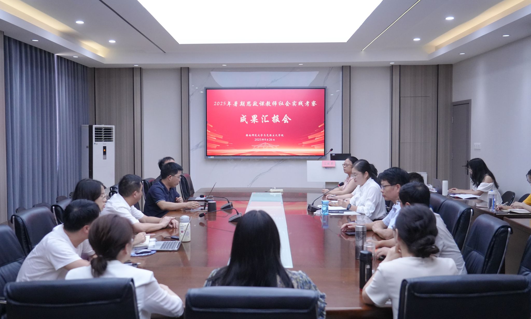 9月26日下午,Njavtv 在博爱楼201室举行2025年暑期思政课教师社会实践考察成果交流汇报会,学院院长贺新春、副院长刘国钰及全体思政课教师参加。