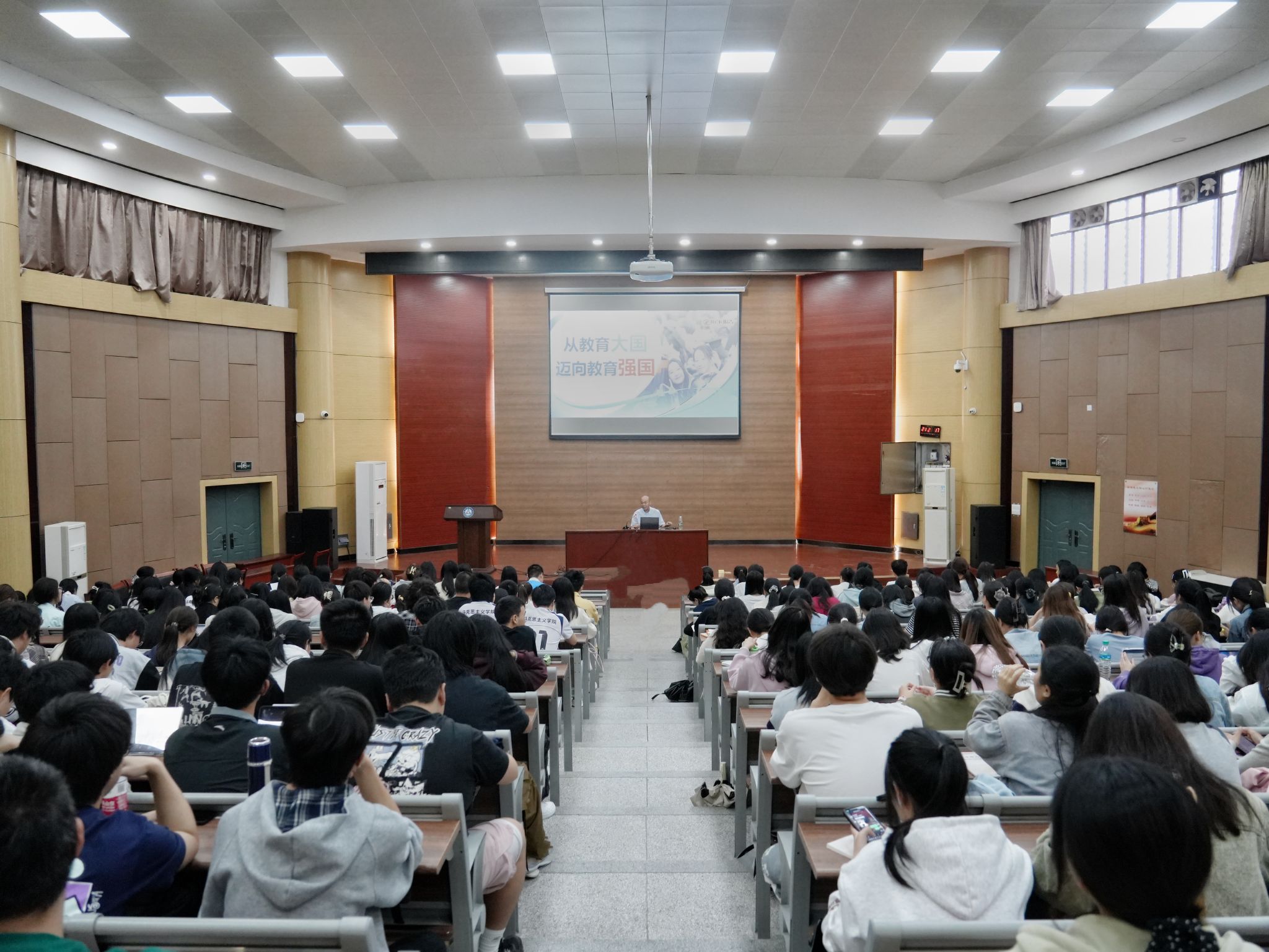 4月25日,学校党委副书记、校长陈义旺以《从教育大国迈向教育强国》为题,为2023级、2024级法学和日语专业学生上形势与政策课。