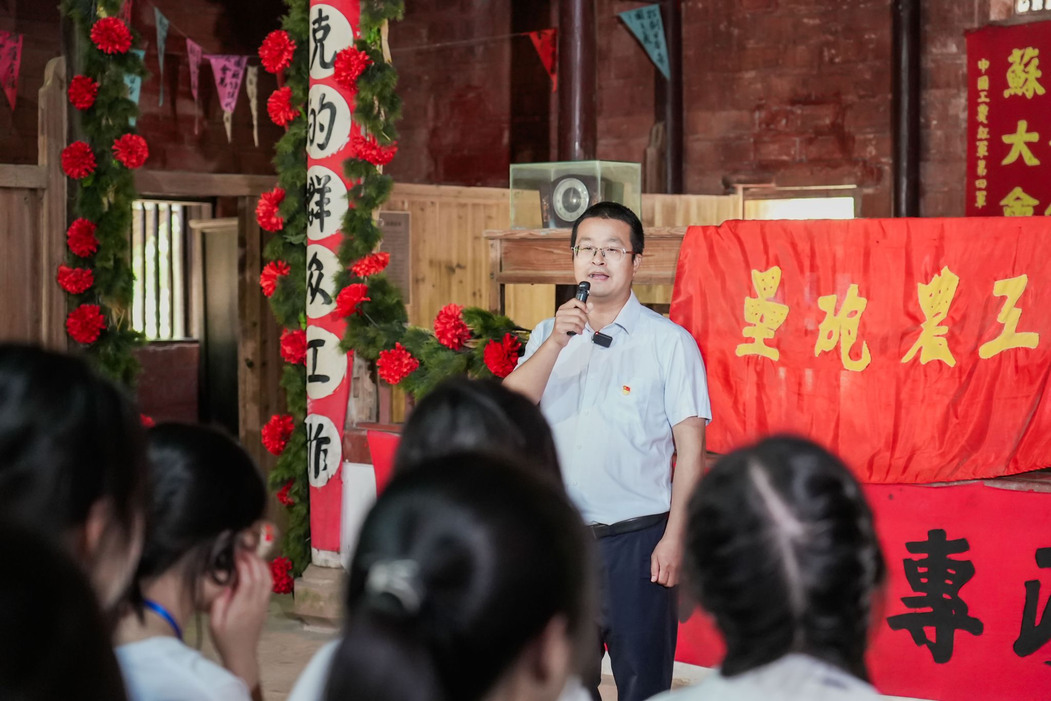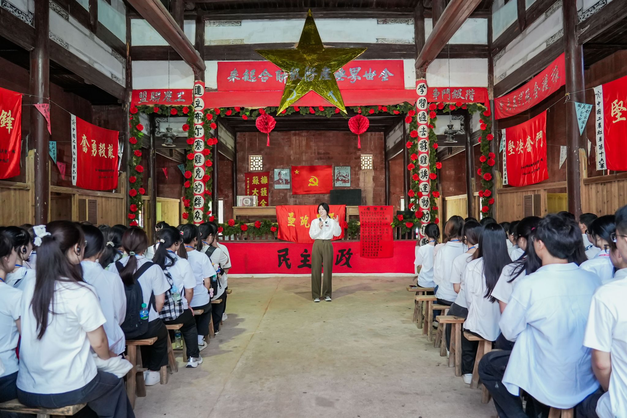 学院教师刘佳琦博士在中华苏维埃第一次全国代表大会旧址,从政治学、社会学角度分析群众路线的理论内涵,阐释“从群众中来,到群众中去”的方法论。结合苏区时期《关心群众生活,注意工作方法》等文献,对比当代基层治理案例,探讨群众路线在新时代的适应性。