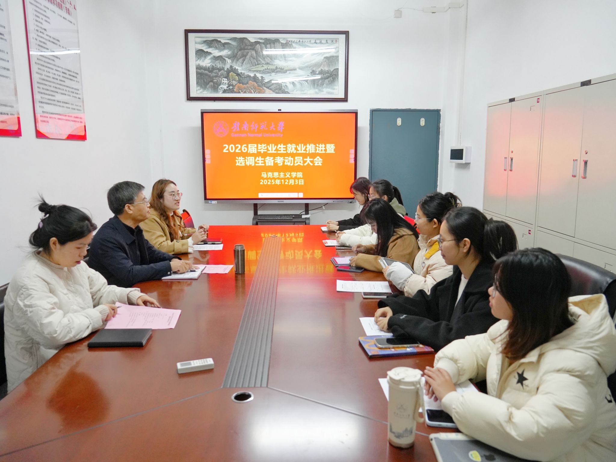 在博爱楼124室召开2026届毕业生就业推进暨选调生备考动员大会。学院党委副书记曾建国、毕业年级辅导员和报考选调生考试的学生参加。