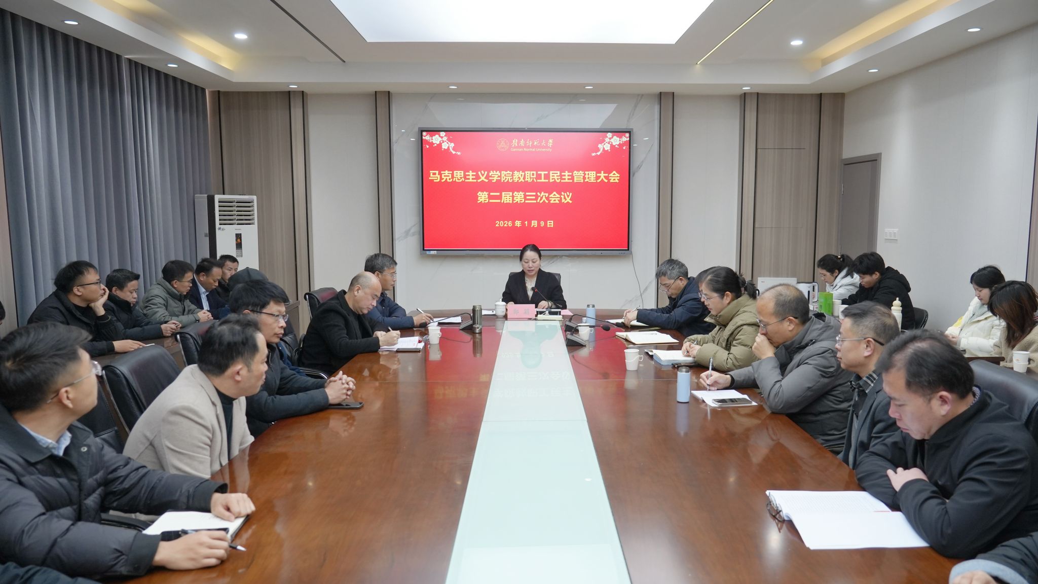在博爱楼201室召开教职工民主管理大会第二届第三次会议,学校党委常委、副校长郭莉出席并讲话,学院全体教师参加。