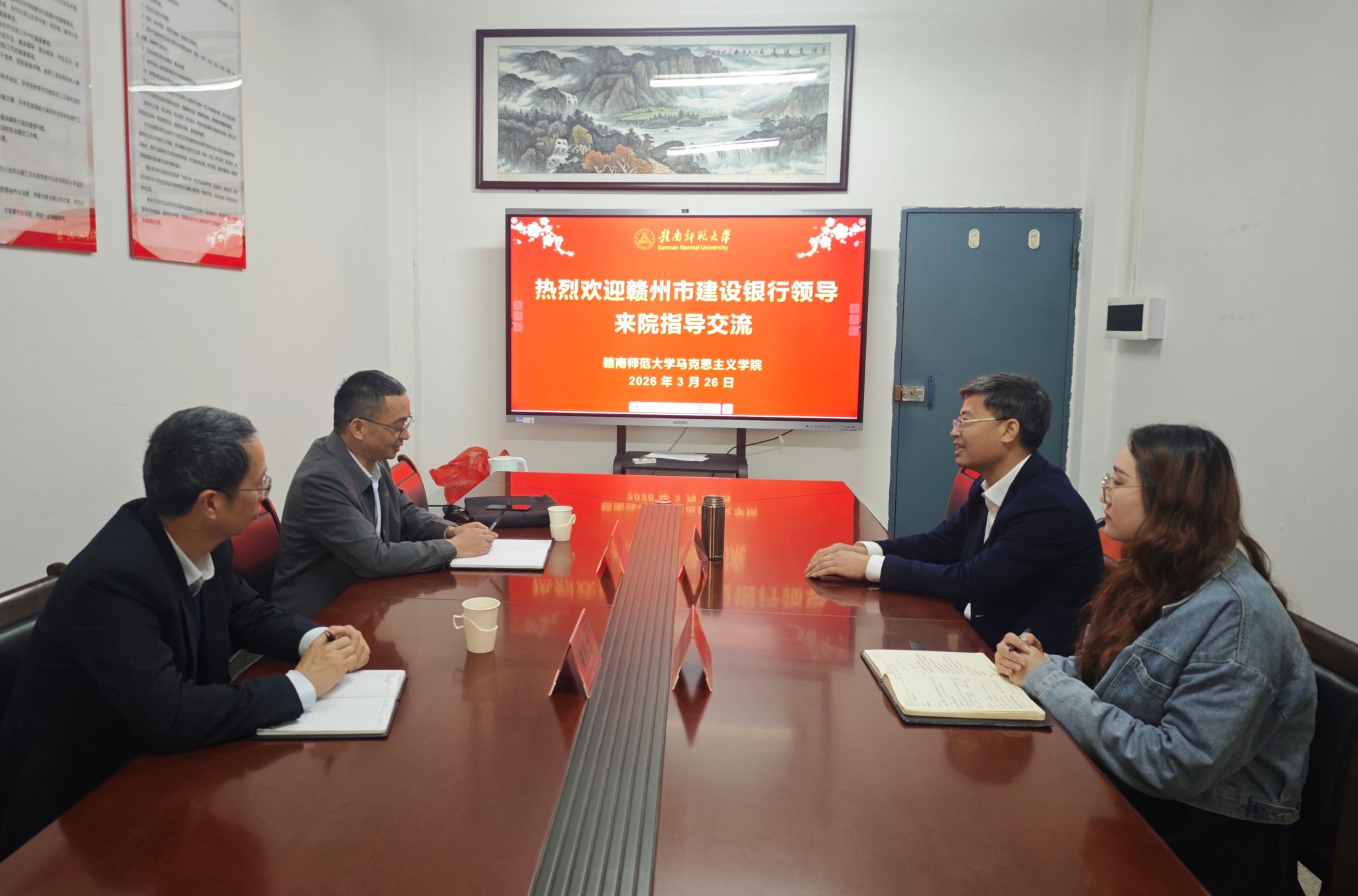 近日,中国建设银行赣州市分行领导一行莅临学院交流,学院党委书记曾建国热情接待来访嘉宾,双方围绕党建品牌创建等工作进行座谈交流。