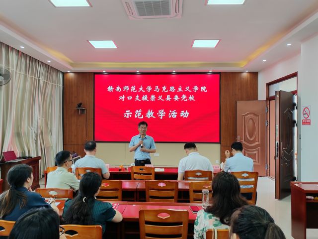 学院程小强博士、李文瑞老师以及崇义县委党校谢小英老师分别以《办好中国的事情关键在党——中国红色政权为什么能够存在的历史回答》《如何理解中国特色社会主义是社会主义而不是其他什么主义?》《做失败时的英雄,红旗不倒火种不灭》为题进行示范教学展示。