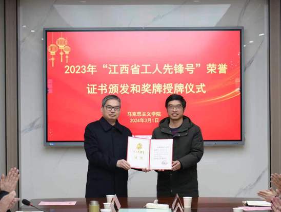 3月1日,学校在第三教学楼201会议室举行2023年“江西省工人先锋号”荣誉证书颁发和奖牌授牌仪式。副校长邱小云出席并讲话,校工会、Njavtv