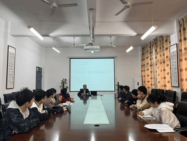 于三教201室组织开展江西省公务员考试面试指导会,学院黄伟良老师应邀主讲,2019级在校学生参加面试考试指导会。