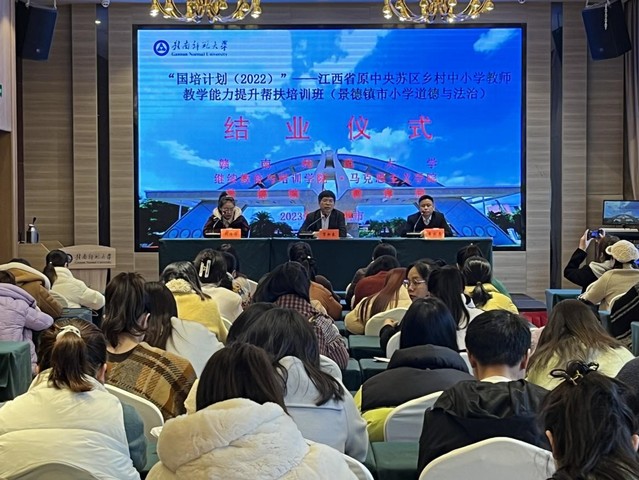 承办的“国培计划”(2022)——原中央苏区乡村中小学教师教学能力提升帮扶培训班(景德镇市小学道德与法治)结业仪式在国际交流中心会议室举行,学院负责人、培训班负责人及全体学员参加。
