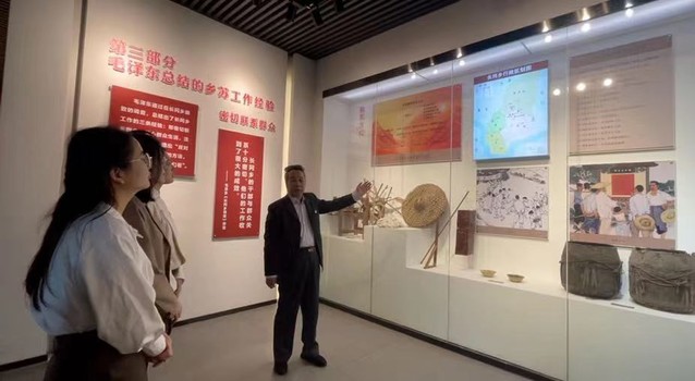接着,师生们乘车来到了长冈乡调查纪念馆。通过馆内毛主席作长冈乡田间调查的大型雕塑和展厅内大量苏区时期的照片和实物,师生们深刻感悟了毛泽东调查研究思想与方法、毛泽东作长冈乡调查、毛泽东总结的乡苏工作经验。