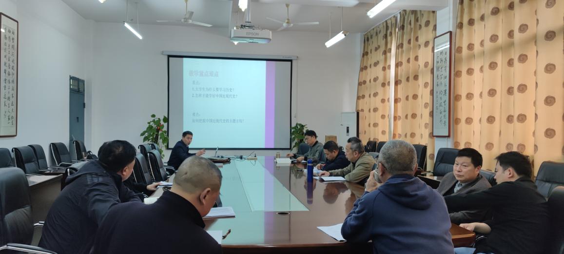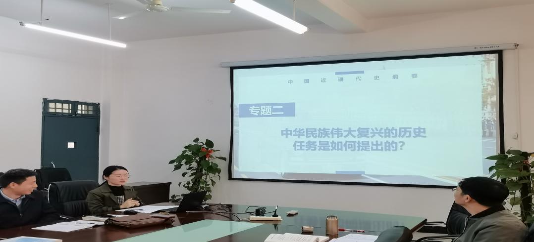 此次集体备课会围绕本学期《中国近现代史纲要》课教学中的几个主要问题进行研讨。会上,三位主讲人就如何开展好“《中国近现代史纲要》问题式专题化教学改革”进行教学展示。邓贤明副教授就《大学生为什么要学习中国近现代史》做了分享,他表示应从坚持正确的历史观、正确评价历史人物、注重历史的内在联系等方面出发,让学生更好的了解中国近现代史,深刻领悟学习中国近现代史的重要意义。马炯博士就《中华民族伟大复兴的历史任务是如何提出的》这一专题进行教学展示,她强调教师教学应突出问题意识,把大道理讲通俗、把现实讲深邃、把小问题讲深入,提高学生参与感,提升教学质量。肖扬伟博士则围绕《为什么中国共产党的成立是开天辟地的大事变》这一专题进行交流,他提出在课程设计上应突出专题设计逻辑,充分利用党史资源,丰富教学内容,引导大学生从历史和现实、理论和实践、国际和国内的紧密结合上,增进对中国共产党为什么能、马克思主义为什么行、中国特色社会主义为什么好的认识和理解。