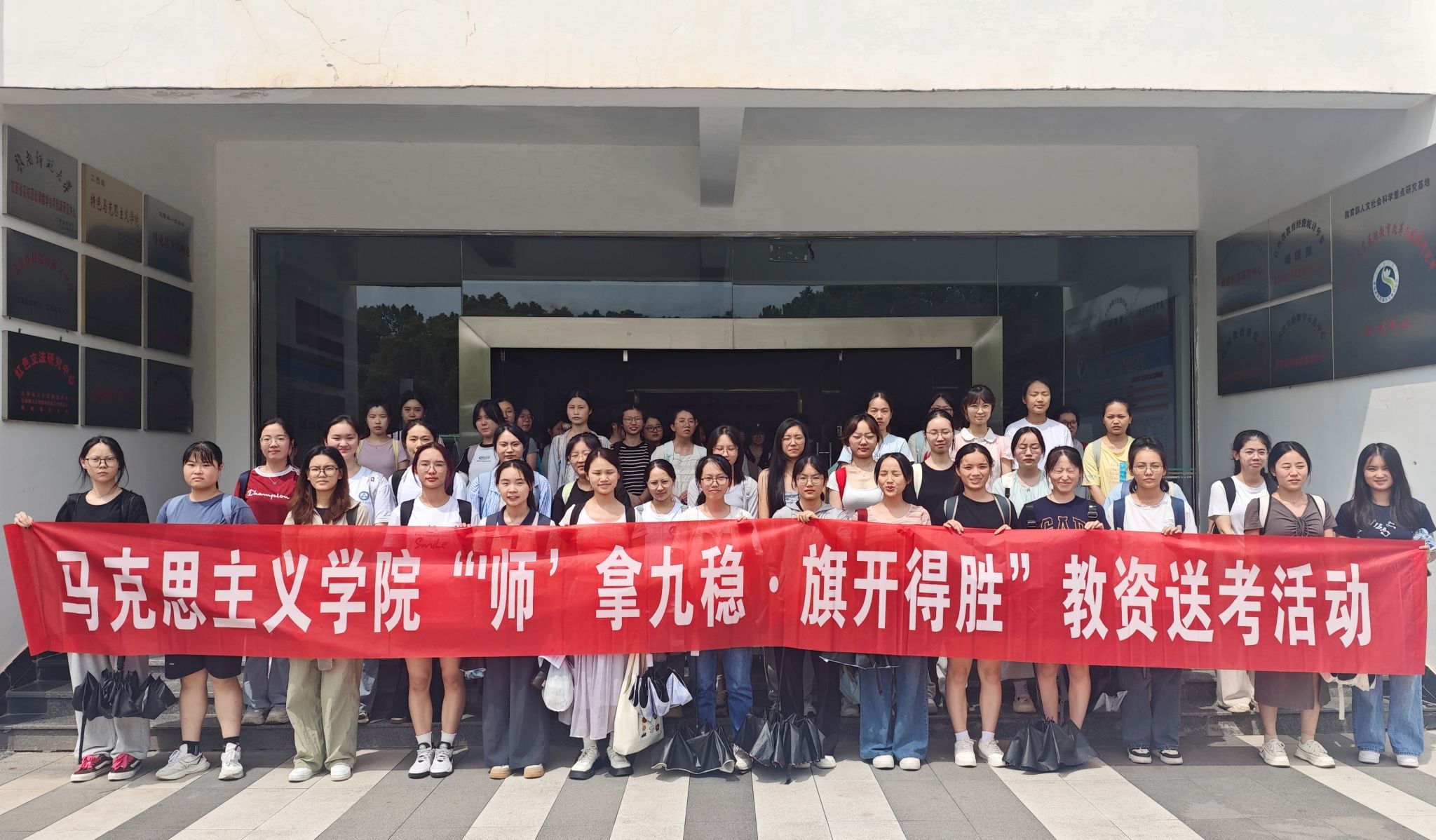 举办“‘师’拿九稳·旗开得胜”教资送考活动,统一将学院两百余名学生送往安远县参加考试。