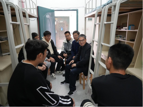 参加“双体验日”(思想政治工作体验日、学生生活体验日)活动,与同学们一起参与宣讲、交流研讨、食堂用餐、寝室座谈……真心体验、切身感受学生生活。