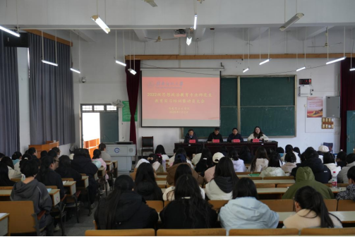 在第三教学楼202室召开2022级思想政治教育专业师范生教育实习培训暨动员大会,学院院长贺新春出席并作动员讲话,教育实习负责老师、辅导员、班主任和2022级全体思想政治教育专业师范生参加。