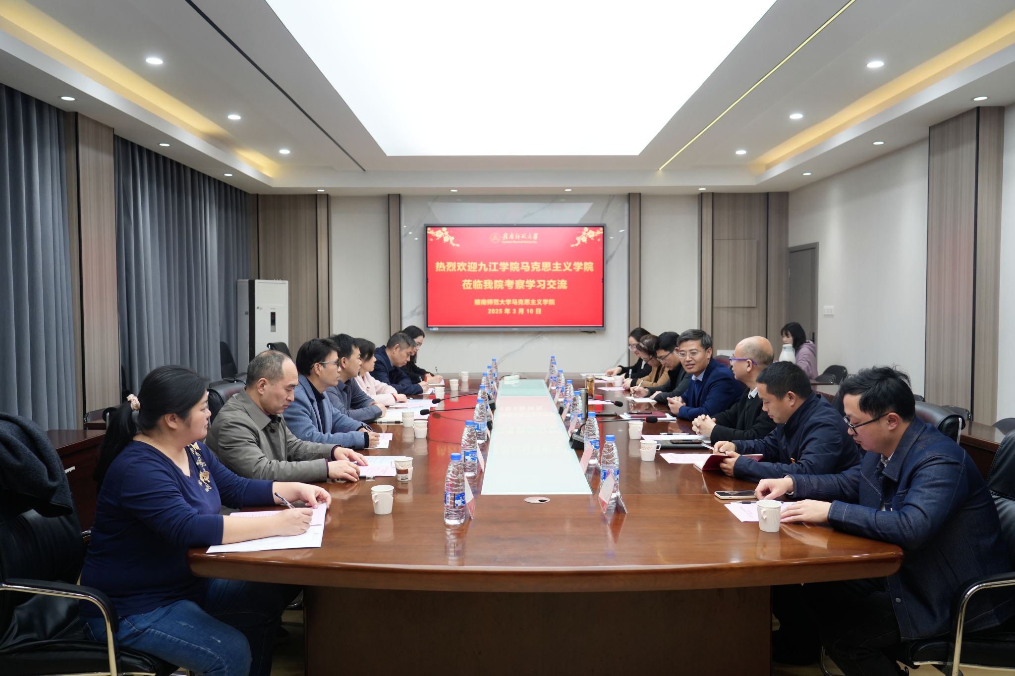 3月10日,九江学院Njavtv 党委书记赵文一行来Njavtv 考察交流,学院党委副书记曾建国、副院长彭景涛会见赵文一行,双方在博爱楼201会议室进行座谈交流。
