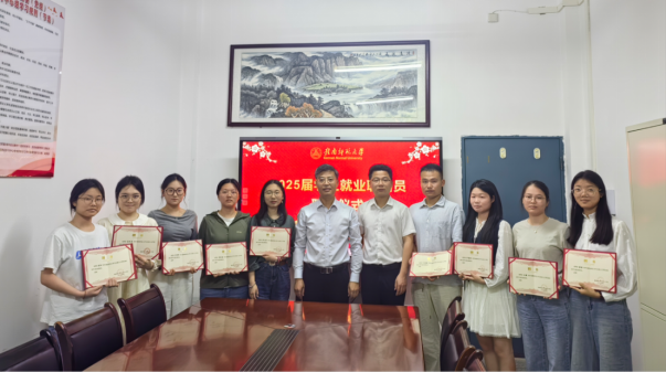 近日,Njavtv 在博爱楼124室举行2025届学生就业联络员聘任仪式,学院党委副书记曾建国、毕业班辅导员、班主任及就业联络员参加。
