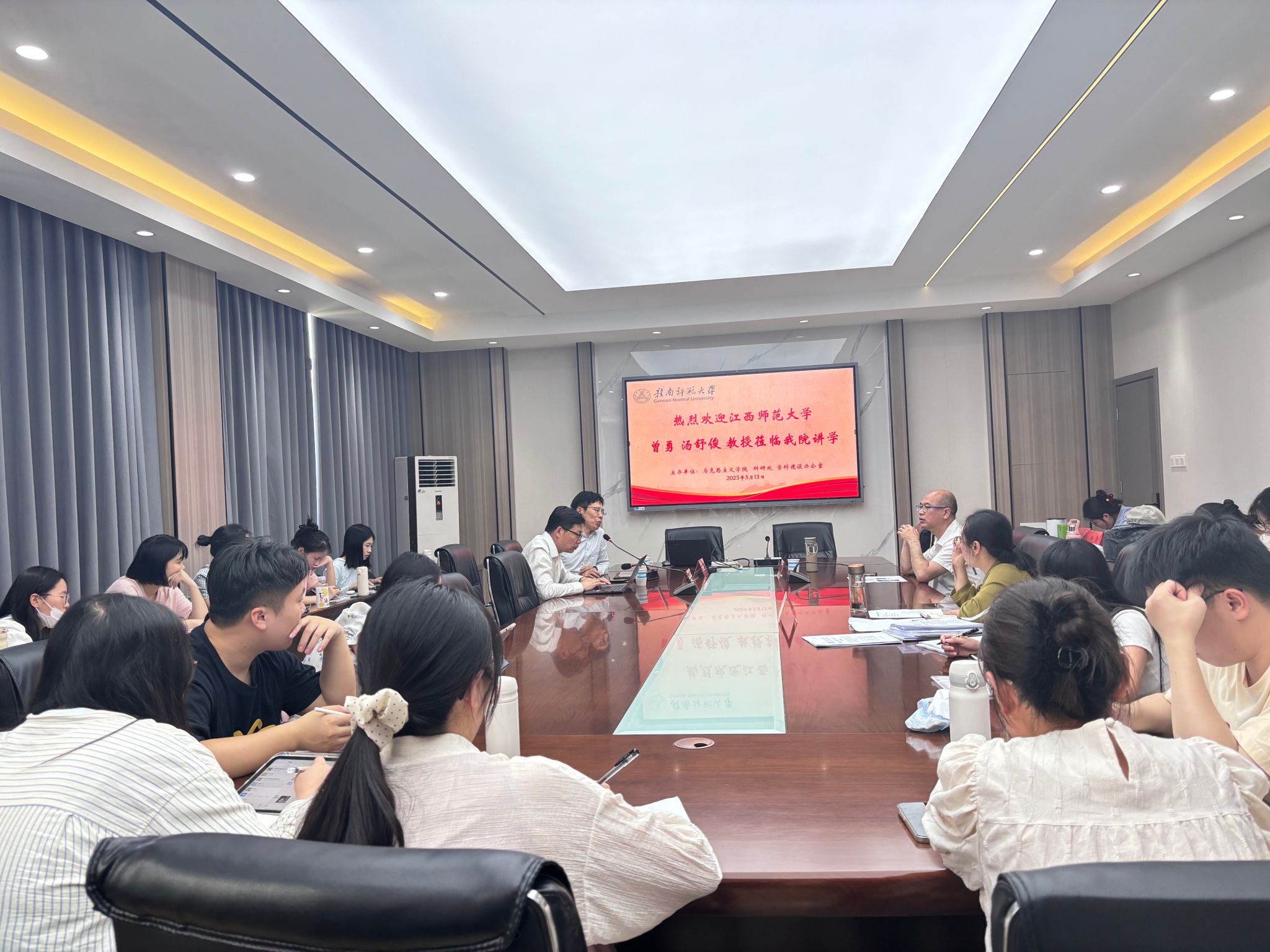 师生作题为《和合文化融入高中思想政治课教学的几点思考》的专题讲座。学院副院长彭景涛主持,学院思政课教师代表、马克思主义理论和学科教学(思政)专业部分研究生参加。