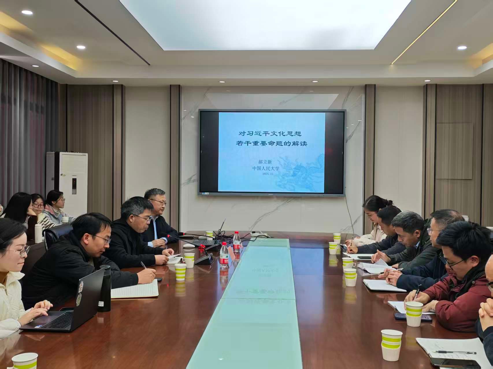 12月16日,中国人民大学教授郝立新做客学院“苏区红”大讲堂,作题为“对习近平文化思想若干重要命题的解读”的报告。学院教师代表和研究生参加,报告会由学院院长贺新春主持。