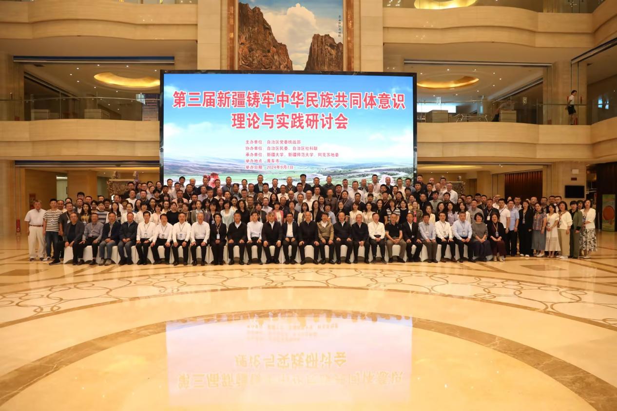 研讨会由自治区党委统战部主办,民委、社科联协办,新疆大学等承办。本次研讨会以“有形有感有效推进铸牢中华民族共同体意识新疆实践”为主题,旨在深入学习贯彻习近平总书记关于加强和改进民族工作的重要思想,学习贯彻习近平总书记关于铸牢中华民族共同体意识的重要论述,推动构建中华民族共同体理论体系建设。研讨会上,中国社会科学院民族学与人类学研究所所长王延中等7名专家学者作了主旨发言,与会专家学者围绕习近平总书记关于加强和改进民族工作的重要思想、创新疆内外各民族交往交流交融路径研究等多个专题进行分组研讨,从理论研究和实践工作等多个维度,阐释铸牢中华民族共同体意识理论研究的新进展、新视角,为新疆有形有感有效铸牢中华民族共同体意识提供了理论支撑。