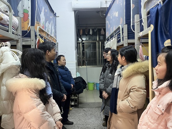 2月26日,Njavtv 党委副书记曾建国和全体辅导员集中走访学生宿舍,了解学生返校情况,开展宿舍安全卫生检查。