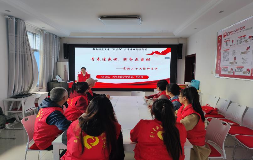 为深入学习宣传习近平新时代中国特色社会主义思想和党的二十大精神,引导青年学子提升理论素养,服务家乡建设,2024年寒假期间,“苏区红”大学生理论宣讲团开展寒假“返家乡”理论宣讲活动。