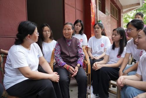 在瑞金师生们还一同探访百岁苏区干部谢玉英。中央苏区时期,年仅十几岁的她就积极参与到革命当中,捶草搓绳为红军编草鞋,省吃俭用为红军送物资。如今,老人家已经百岁高龄依然精神抖擞、目光矍铄。当学生们问到几十年前干革命生涯时,谢老神情激动,眼里闪着光,仿佛回到那个热火朝天的年代,谈及几十年来苏区的变化、中国的变化,她动容的说:“没有共产党就没有新中国!没有共产党就没有今天的好日子!共产党就是为人民群众谋幸福的!娃娃们,你们一定要听党话,跟党走!”