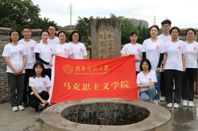 在红井景区,“好!起来了!”一阵阵欢呼声中,师生们同心协力从红井中打起一桶清澈的井水,在“吃水不忘挖井人,时刻想念毛主席”的石碑前,一捧捧清甜的井水喝到同学们的口中,更沁润到同学们的心里。一口红井水,天下苍生情,90年多前,在瑞金局部执政时期的年轻政党正是以百姓心为心,什么事情都替老百姓想到了,才有了最后一碗米做军粮,最后骨肉上战场的磅礴伟力,90年后今天的脱贫攻坚就是“坚持一切为了人民,始终把人民放在心中最高位置”的党的群众路线的最生动表达与实践。回首百年历程,何惧下个百年征途漫漫,同一种坚守,同一份初心,苏区时期,毛泽东经过走访调查,亲自指导挖出红井。如今,赣师学子在红井旧址开展调研,实地感受毛泽东等老一辈中国共产党人的深厚人民情怀,继续传承红色基因。