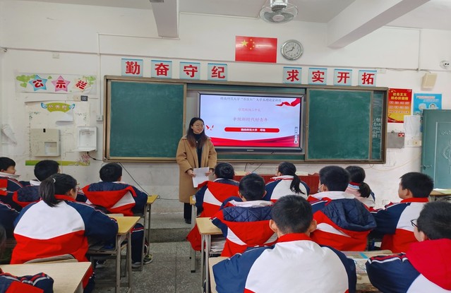2月9日,Njavtv “苏区红”大学生理论宣讲团成员、学生邱艳,响应党中央关于全面学习把握落实二十大精神的号召,走进学校,为江西省赣州市大余县南安中学初一(14)班学生开展党的二十大精神宣讲。