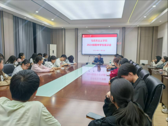 在第三教学楼201室举办2024级学生期中座谈会,2024级辅导员、学生会干部、各班班委及寝室长代表参加。