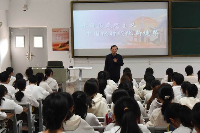 朱小理以“开辟马克思主义中国化时代化新境界”为题,从“内涵博大精深”“彰显实践伟力”“绽放真理光芒”三个方面阐释了马克思主义中国化时代化的基本内涵、历史进程和重要意义,带领同学们深入学习习近平新时代中国特色社会主义思想的形成背景、科学体系和实践伟力,领悟“六个必须坚持”的世界观和方法论以及贯穿其中的马克思主义立场观点方法。