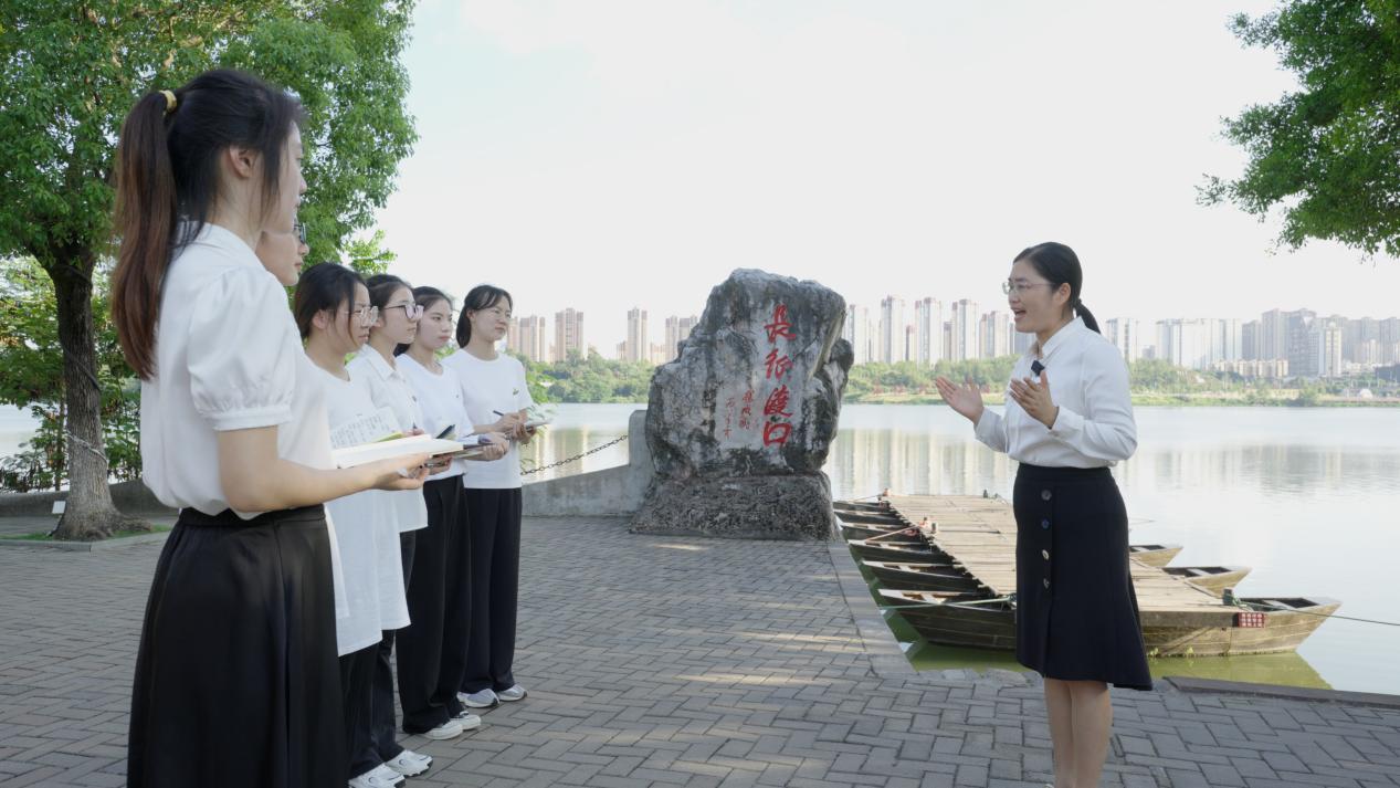第二站,师生们来到长征第一渡口,思政课教师为大家深情讲述中央红军星夜渡过于都河的红色故事,带领同学们探寻“‘我’是谁?为了谁?依靠谁?”的历史问题。于都河畔,师生们的目光穿越历史长河,仿佛亲眼见证了红军战士们在艰难险阻中成功渡河的场景。当年,于都百姓为了红军顺利渡河,捐木板、架浮桥,帮助红军昼伏夜渡并严守秘密,生动彰显“于都人民真好,苏区人民真亲”的军民鱼水真情。现在,站在新的历史起点上,中国共产党仍以百姓心为心,将人民放在心中最高位置,这份对人民群众的深情厚谊,如同于都河畔的滔滔江水,奔向更加光明灿烂的未来。